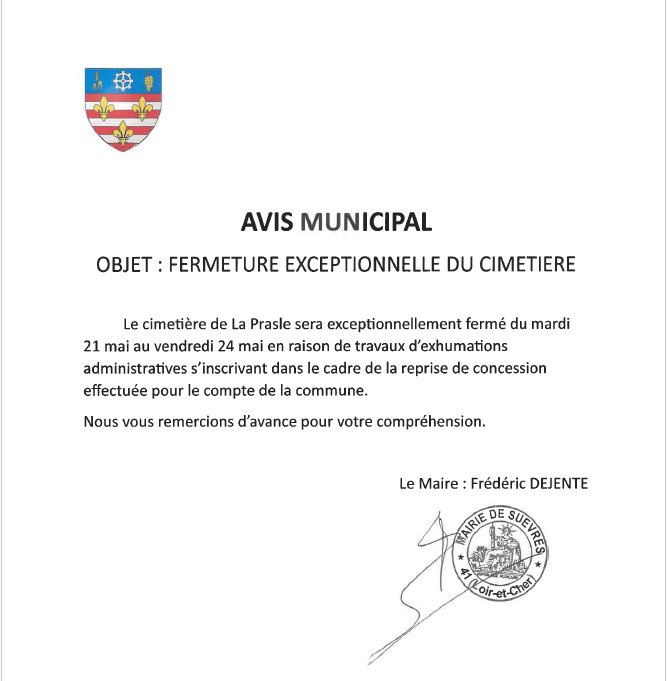 Fermeture exceptionnelle du cimetière de La Prasle du 21 au 24 mai.