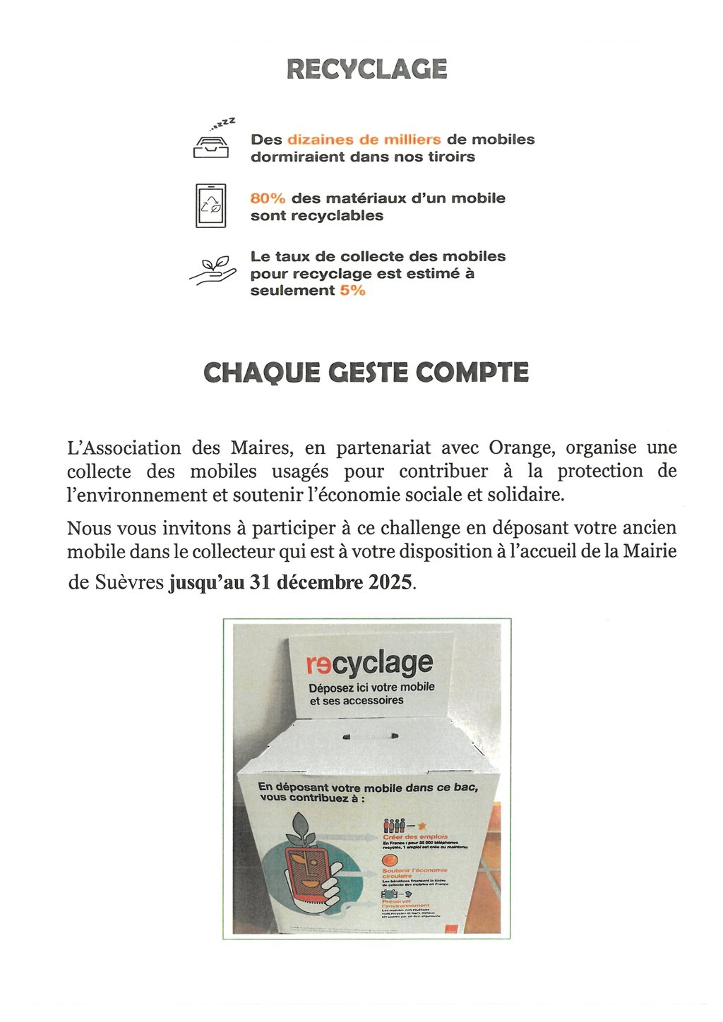 RECYCLAGE : Collecte des mobiles usagés jusqu'au 31/12/2025