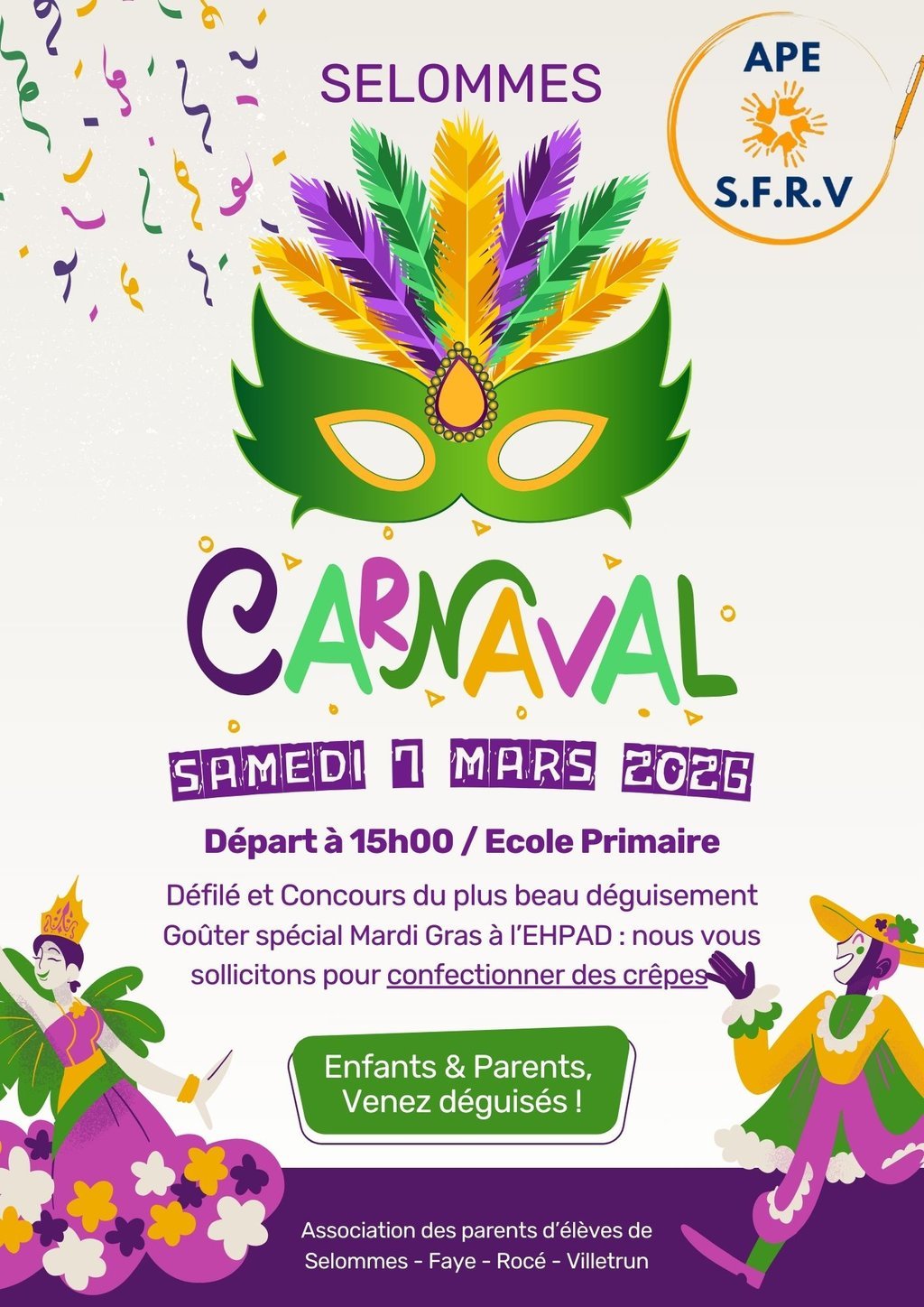 Nous vous attendons nombreux, déguisés et prêts à faire vibrer les rues de Selommes !